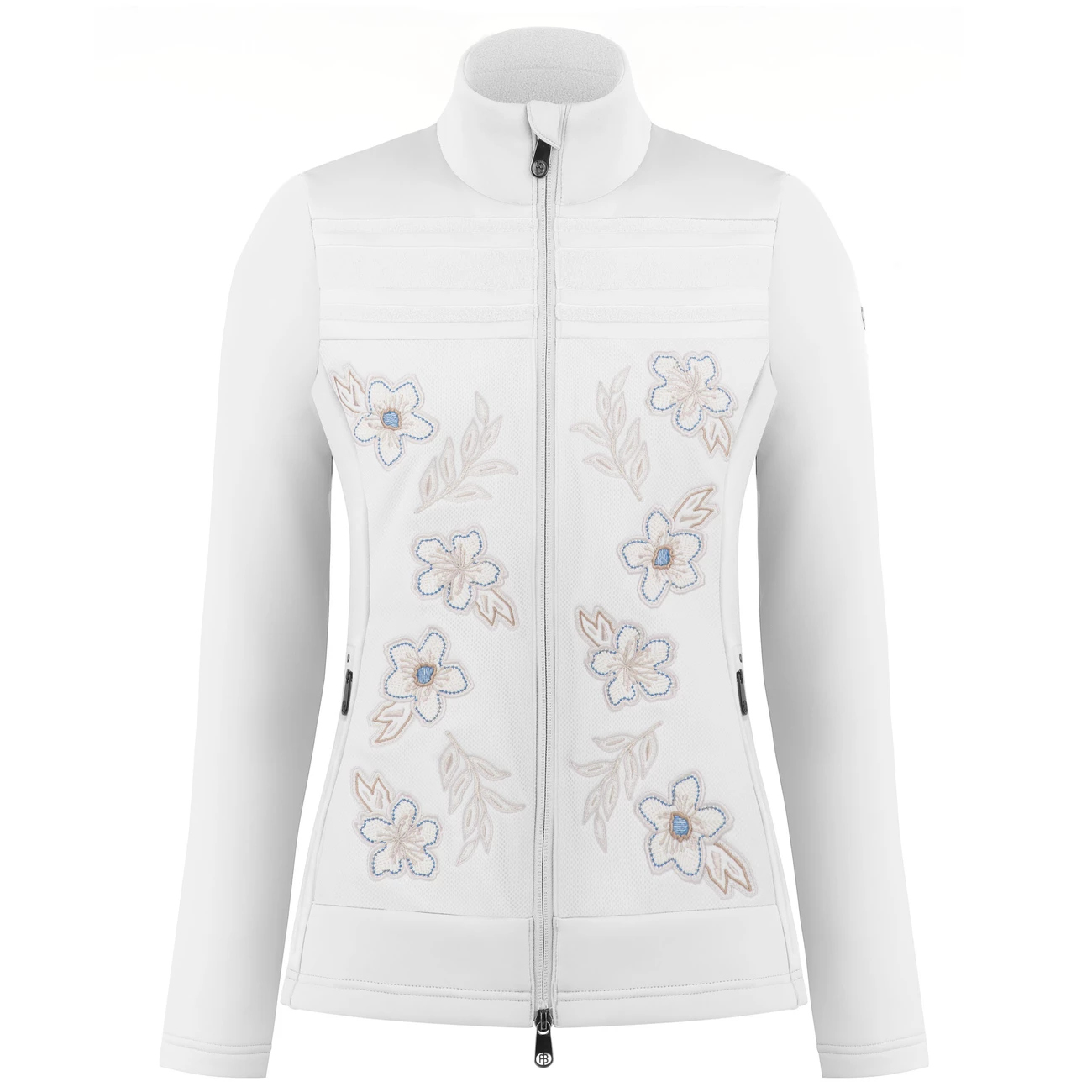 Une charmante veste hybride en polaire stretch, pour un effet visuel graphique et féminin qui attirera tous les regards sur les pistes.